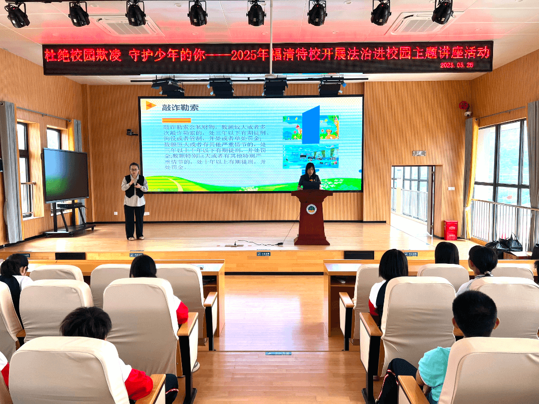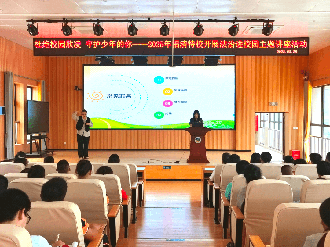 为增强学生法治观念,守护未成年人健康成长,近日,由福清市人民法院主办、福清市残疾人联合会与福清市汇信金融多元调解中心共同参与的 "杜绝校园欺凌 守护少年的你" 主题讲座活动在福清市特殊教育学校举行。